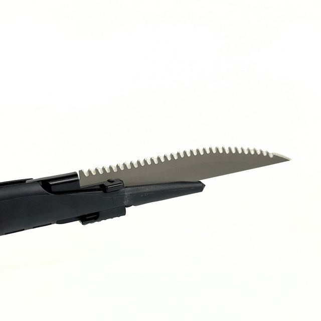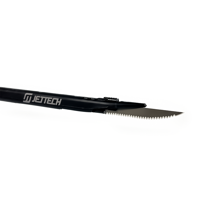 Engineered from tough, ceramic-reinforced nylon and equipped with a razor-sharp fold-away, Damascus steel blade, this tool handles the messiest intake jams with ease. The dual-purpose head features a probe tip end for pushing through debris and fangs at the other end for pulling out tangled ropes or weeds. It's compact, lightweight, and splits in two for easy storage in your seat or front hatch.